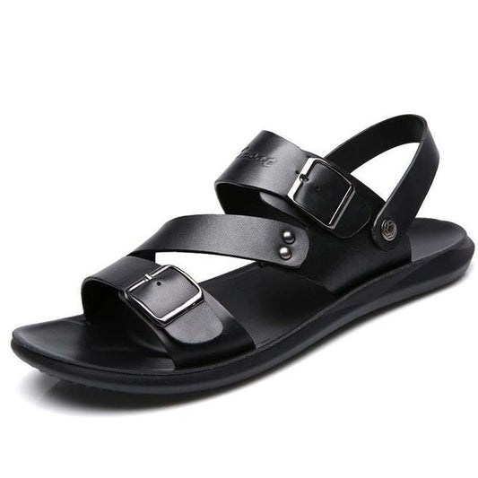 Sandalias para hombre negras de cuero transpirables