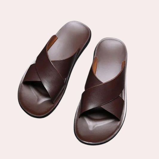 Sandalias para hombre marrón cuero con tiras cruzadas confort