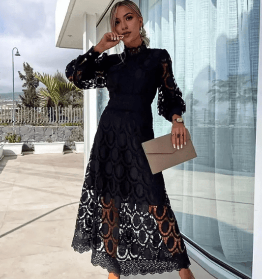Vestido de verano para mujer tipo swing de poliéster | Vestido aireado con bordado y mangas 7/8