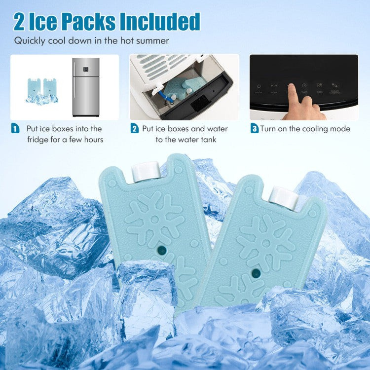 Disfruta de un refrescante enfriamiento con el enfriador de aire 3 en 1 con control remoto. Este dispositivo compacto combina enfriamiento de aire, función de ventilador y humidificación en un diseño elegante. Con tres modos de viento, oscilación flexible y función de temporizador, garantiza una temperatura ambiente ajustable a tu gusto. El gran tanque de agua permite un uso prolongado, mientras que el bajo nivel de ruido ofrece comodidad sin interrupciones. Gracias a las asas, ruedas y control remoto, se puede manejar fácilmente en cualquier lugar, perfecto para salas de estar, dormitorios u oficinas.