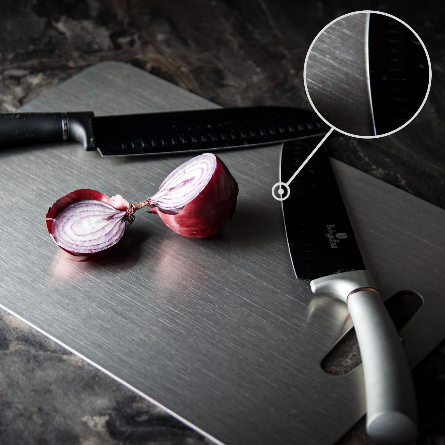 Experimente la máxima higiene y durabilidad en la cocina con nuestra tabla de cortar de 100 % titanio. Esta tabla no tóxica protege contra microplásticos y BPA, asegurando que sus alimentos se mantengan seguros y saludables.