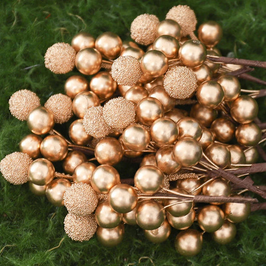 Set decorativo di 10 bacche di Yangmei in schiuma dorata per decorazioni festive