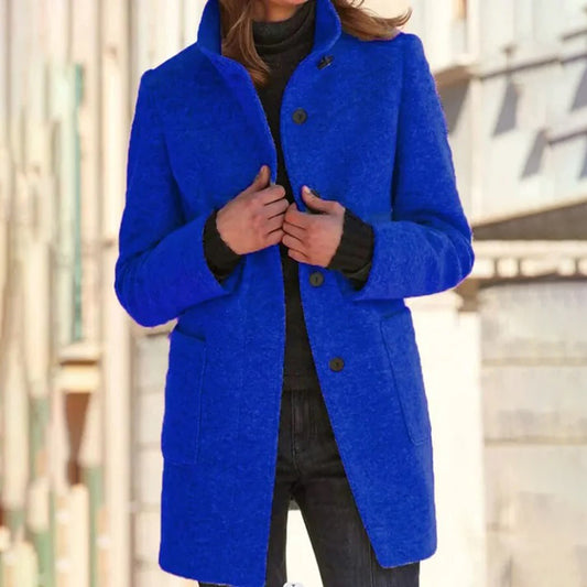 Lungo cappotto casual da donna con collo alto e maniche lunghe – cappotto elegante per ufficio, vita quotidiana e viaggi
