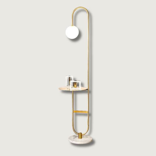 NordLicht Duo – Lampada da terra funzionale con piano d'appoggio in stile nordico