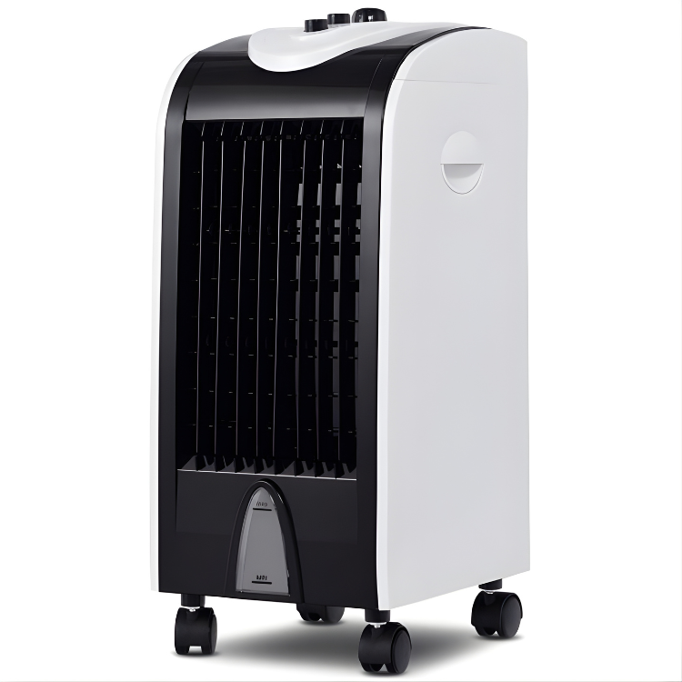 Grazie alla sua struttura compatta e alle ruote scorrevoli, il dispositivo si sposta facilmente da una stanza all'altra. È efficiente dal punto di vista energetico, facile da usare e a bassa manutenzione – basta riempirlo d'acqua, collegarlo e godersi subito aria fresca!