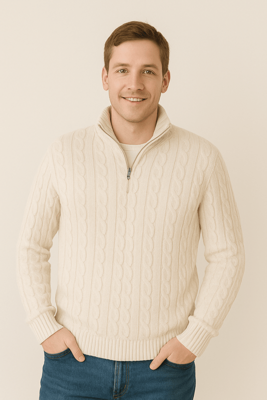 Męski sweter z półzamkiem warkoczowy klasyczny design ciepły materiał