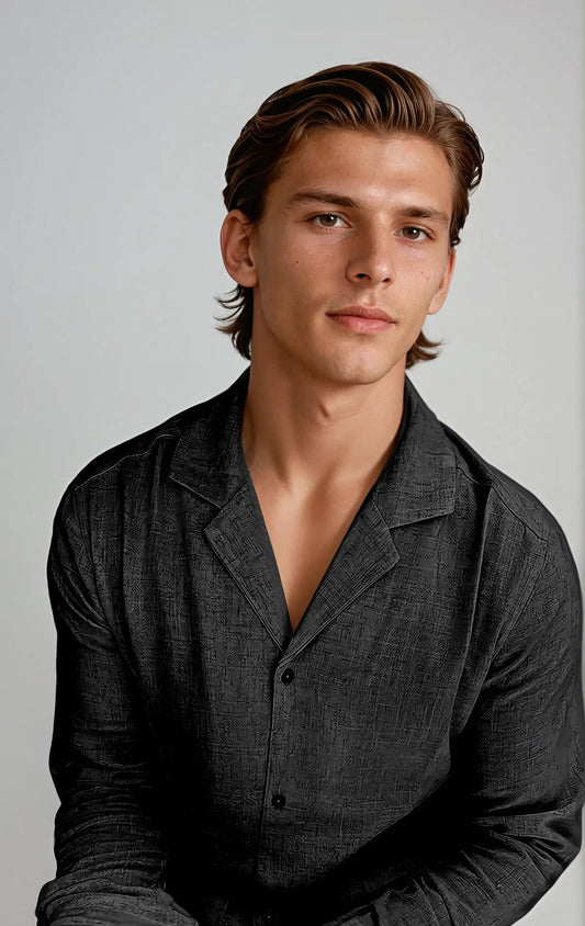 A oferta termina hoje à noiteCamisa de linho para homem preta – Camisa de verão intemporal em mistura de linho
